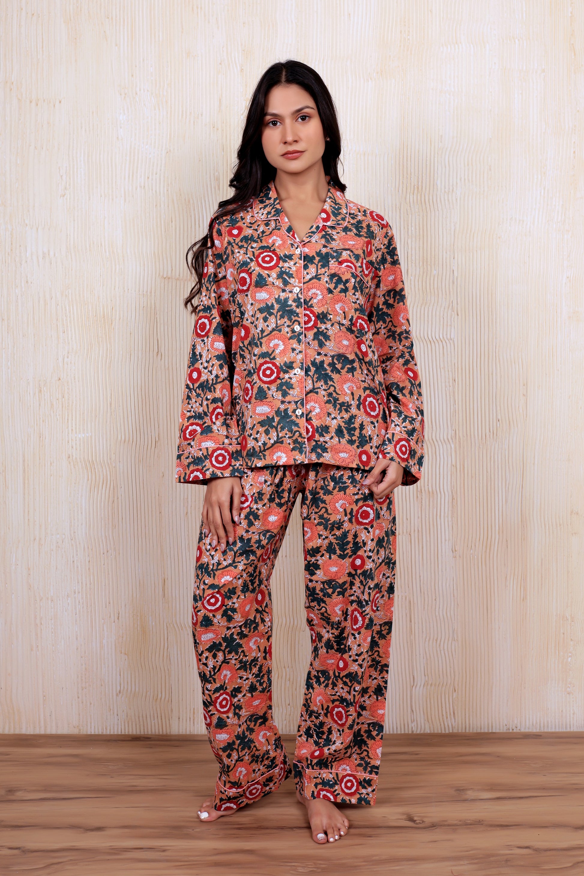 Experience the perfect blend of comfort and luxury with our Trail cotton pajama set. Featuring exquisite block print designs, these pajamas combine traditional artistry with modern comfort. Available in multiple sizes from small to 3XL, ensuring a perfect fit for everyone. The premium cotton fabric offers breathability and softness for an indulgent night's sleep.