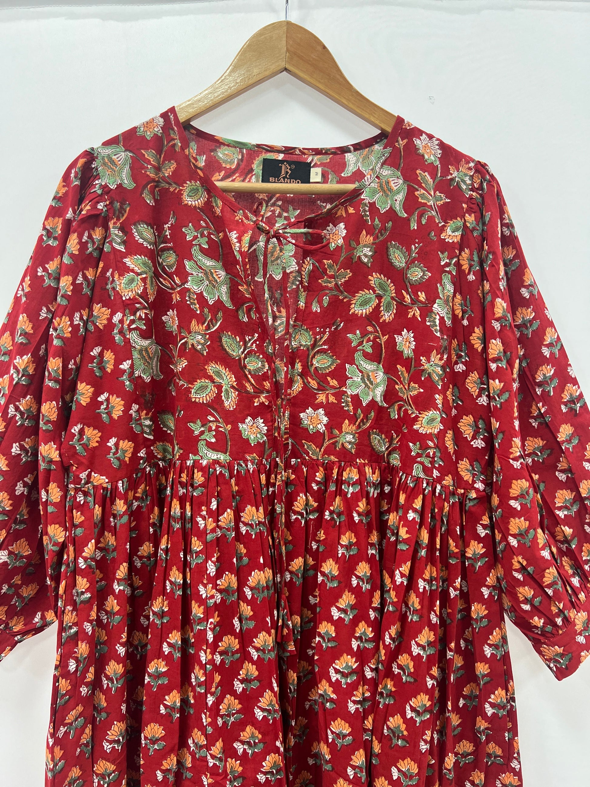 Elevate your wardrobe with the Blando Cotton Block Print Long Dress, a perfect blend of comfort and elegance. This stunning dress is crafted from soft, breathable cotton and features an intricate block print design. The long, flowing silhouette and gathered details create a flattering and feminine look, making it ideal for any occasion, from casual outings to special events.