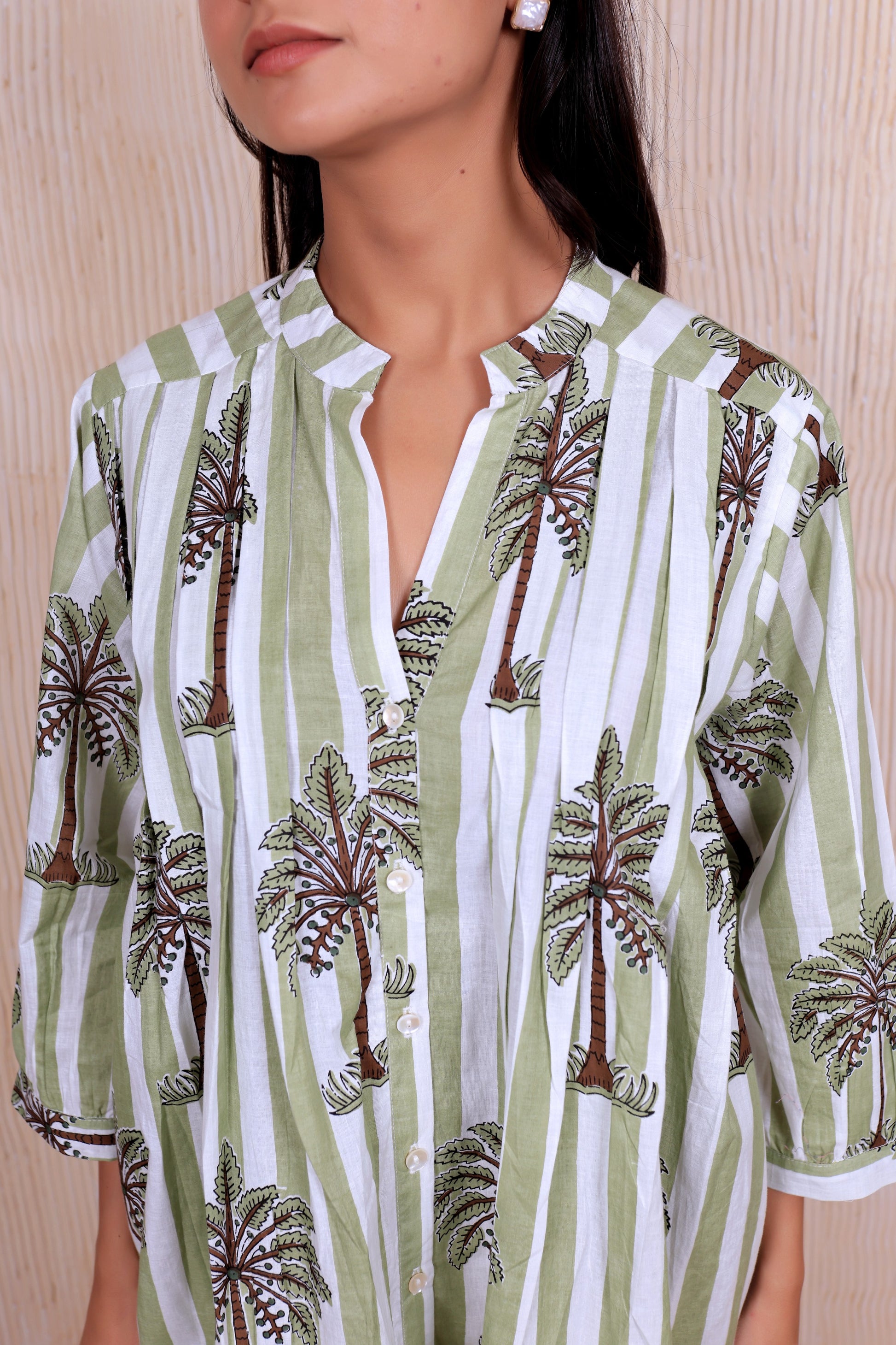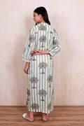 The dress is adorned with a delightful print of flowers and vibrant green leaves, reminiscent of a blooming garden. The thin, delicate straps and relaxed fit create a feeling of effortless grace, while the breezy fabric ensures comfort on even the warmest days. This dress is the perfect choice for embracing the spirit of summer with its cheerful colors and delightful floral print.
