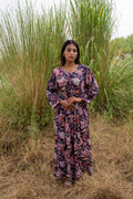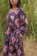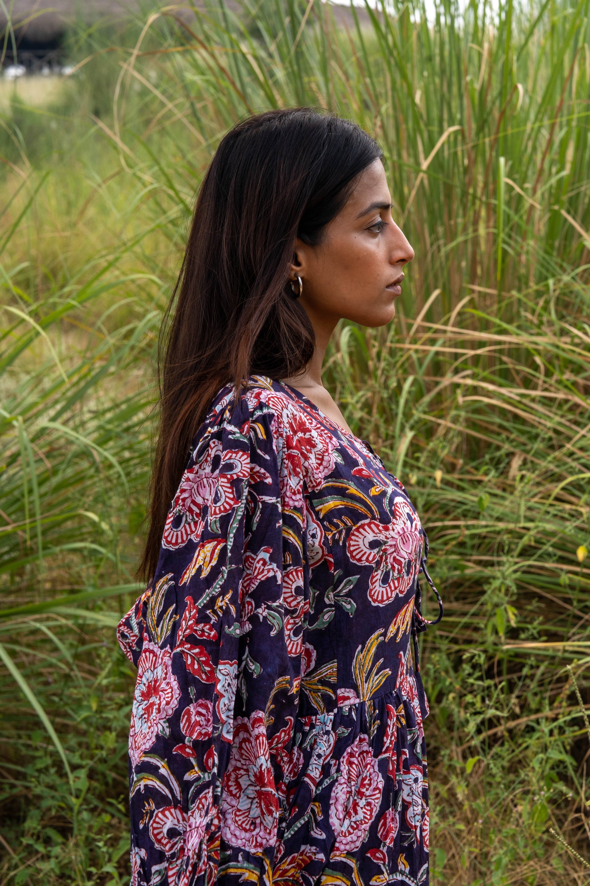 Blue Meadow Dress is a vision of summery elegance, crafted from soft, breathable cotton in a deep and rich shade of blue. The dress is adorned with a delightful print of flowers, reminiscent of a blooming garden under a starry sky. The 3/4 sleeves and relaxed fit create a feeling of effortless grace, while the breezy fabric ensures comfort on even the warmest nights. This dress is the perfect choice for embracing the spirit of summer with its cheerful colors and delightful floral print.