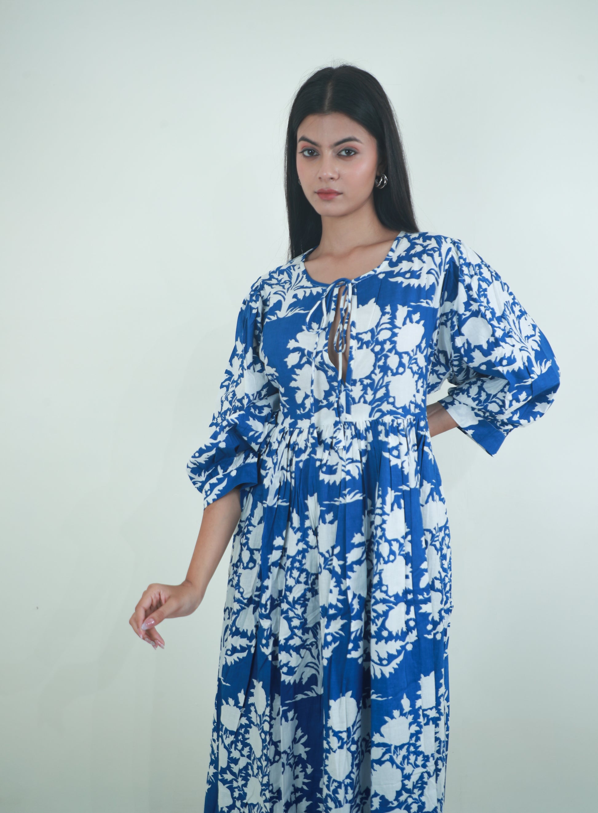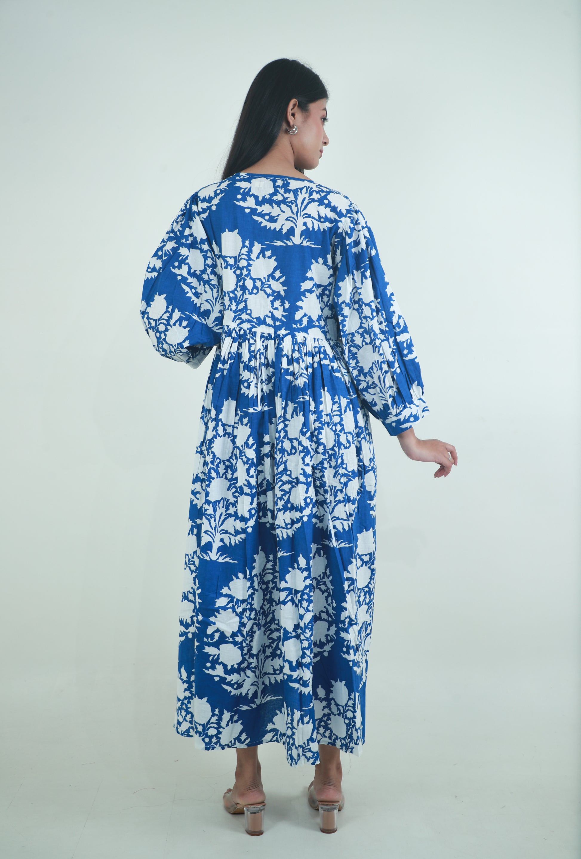 Elevate your wardrobe with the Blando Cotton Block Print Long Dress, a perfect blend of comfort and elegance. This stunning dress is crafted from soft, breathable cotton and features an intricate block print design. The long, flowing silhouette and gathered details create a flattering and feminine look, making it ideal for any occasion, from casual outings to special events.