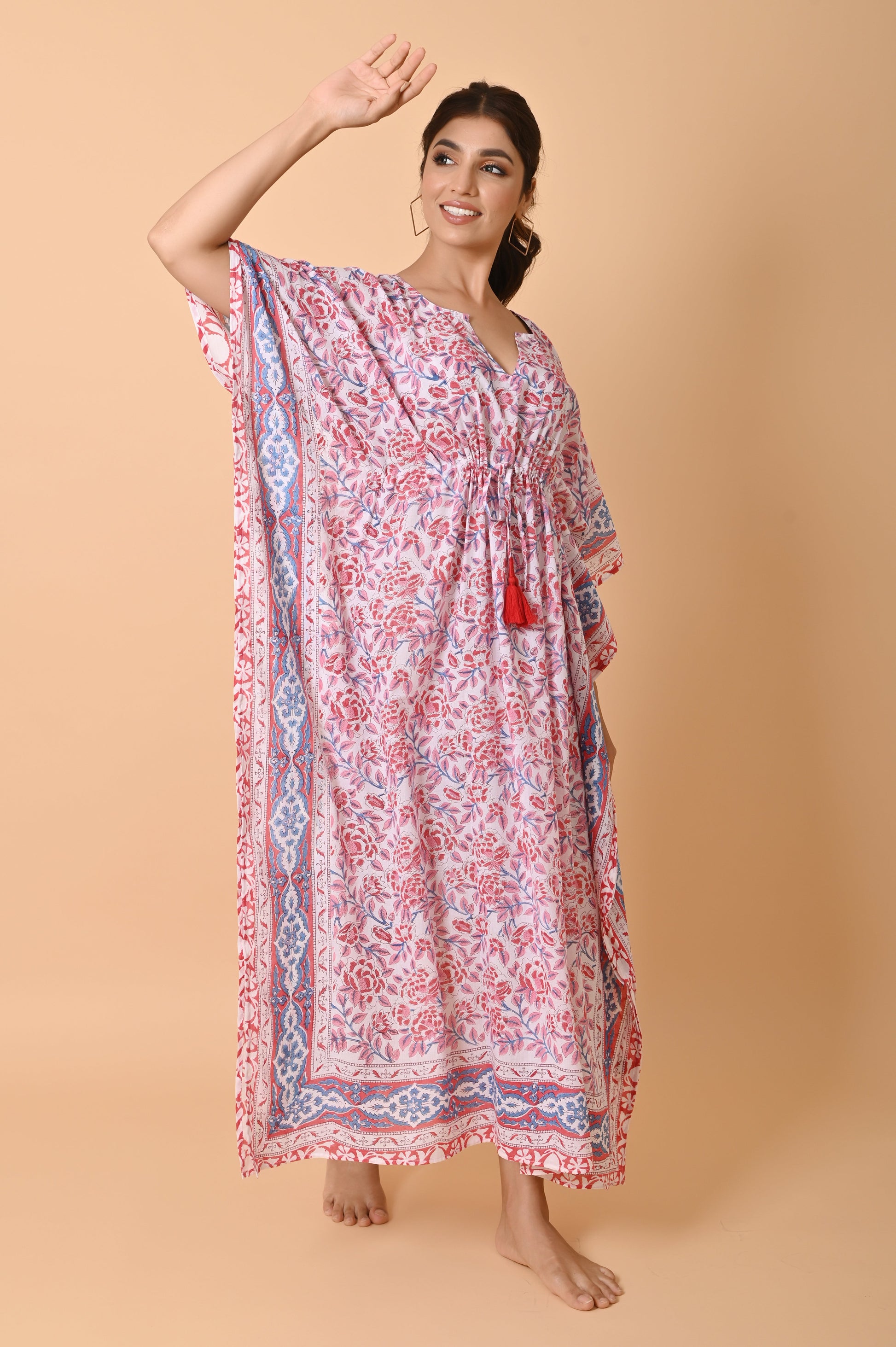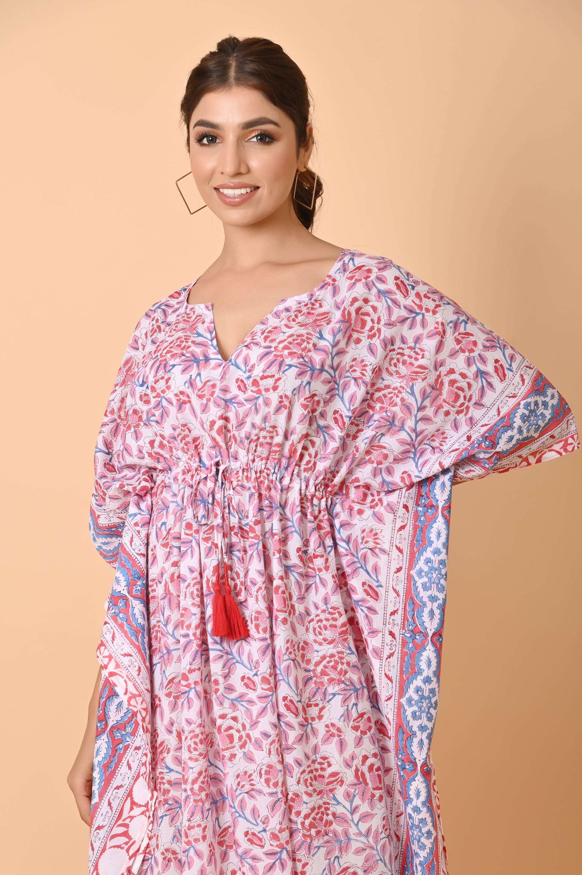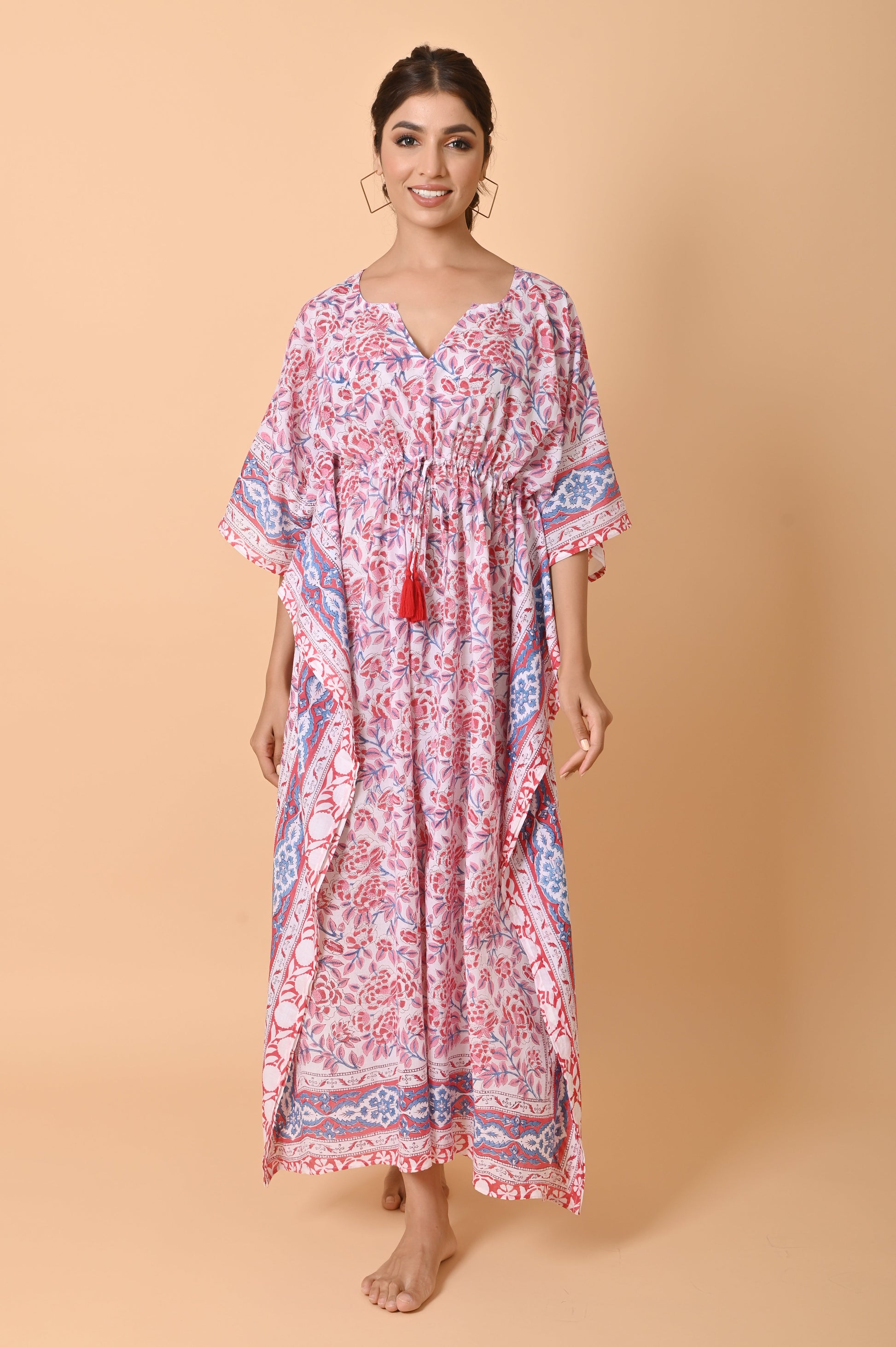 Indian Block Print Cotton Long Bohemian Kaftan Dress
