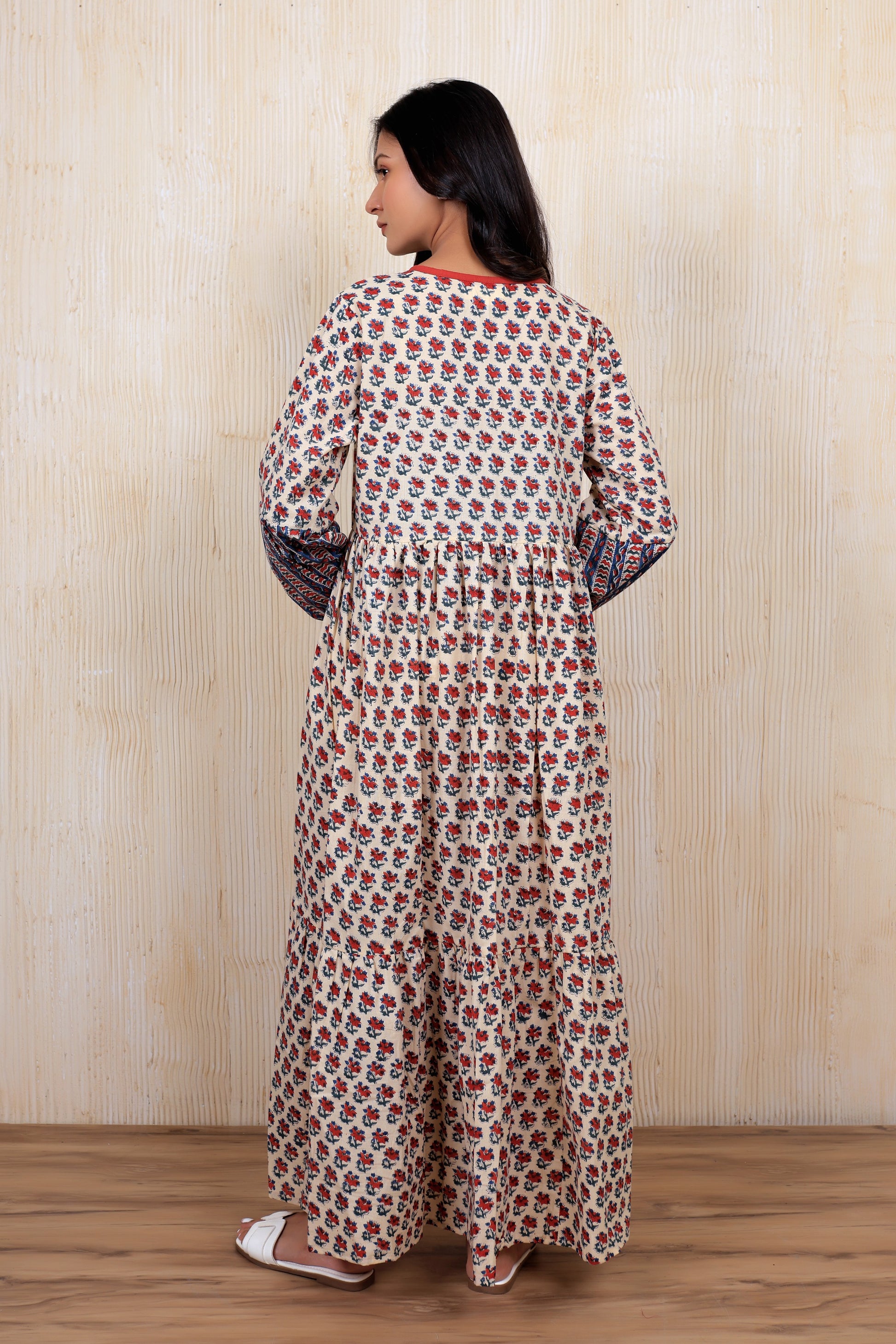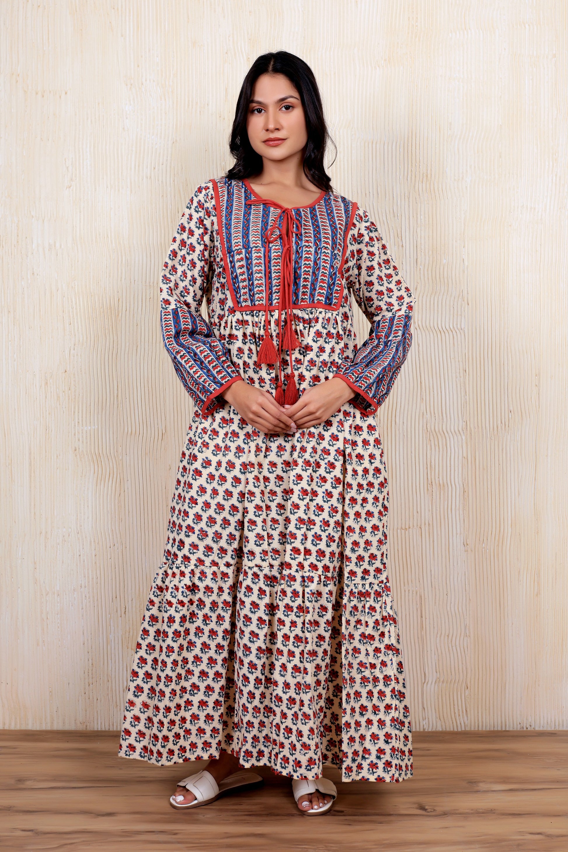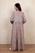 Crafted from sustainably sourced cotton, this block-printed maxi dress embodies traditional artisanal techniques passed down through generations. The flowing silhouette and breathable fabric make it an ideal choice for warm weather, while the timeless indigo palette ensures versatility across seasons. Each piece carries the distinctive character of hand-printed patterns, making it a unique addition to any wardrobe. Perfect for those seeking ethical fashion that celebrates heritage craftsmanship without compromising on contemporary style.