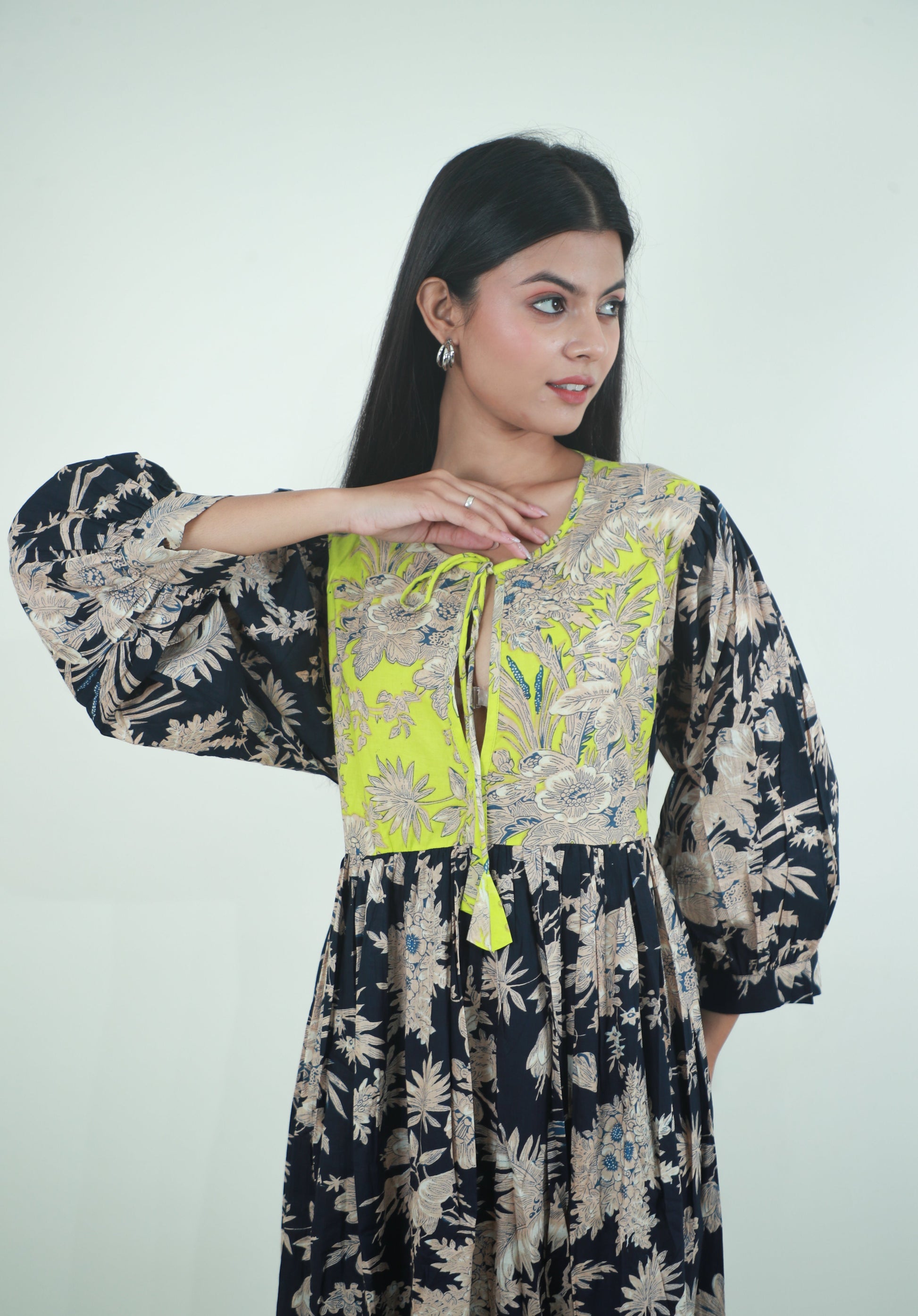 Add a touch of grace and sophistication to your collection with the Blando Cotton Block Print Long Dress. This versatile piece is designed to make you look and feel fabulous, no matter the occasion.