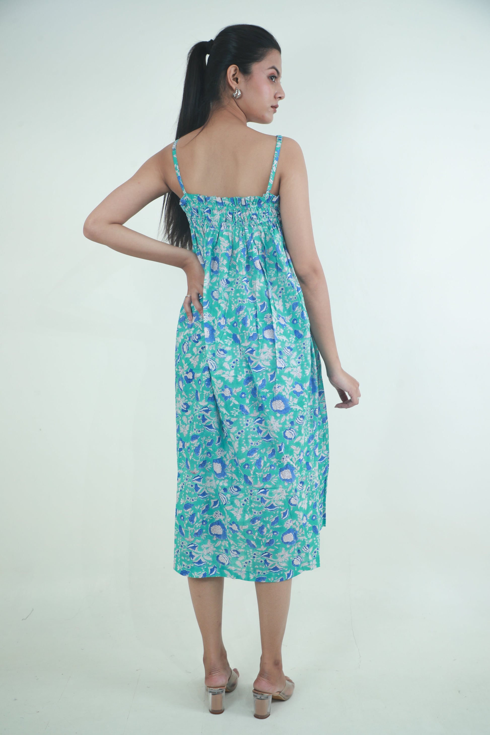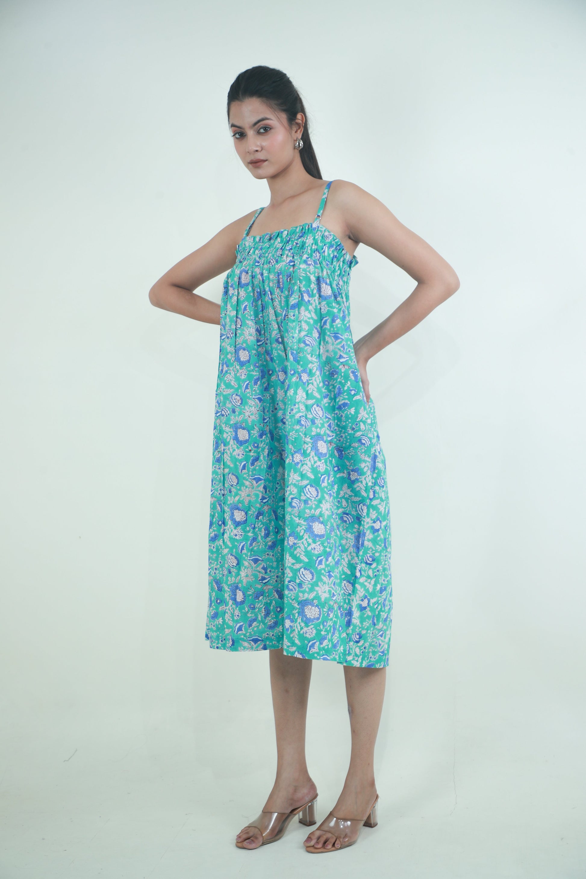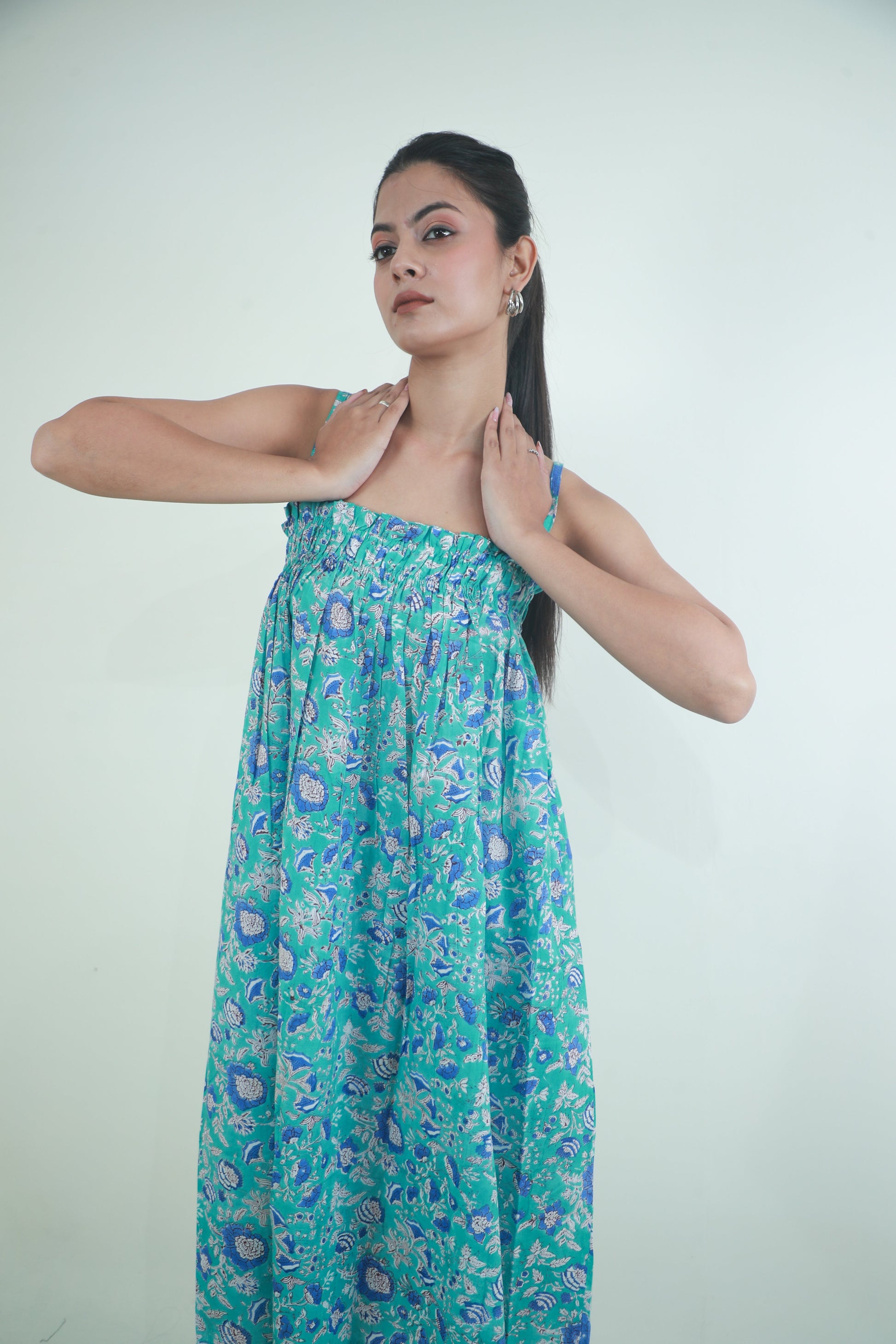 Elevate your wardrobe with the Blando Cotton Block Print Long Dress, a perfect blend of comfort and elegance. This stunning dress is crafted from soft, breathable cotton and features an intricate block print design. The long, flowing silhouette and gathered details create a flattering and feminine look, making it ideal for any occasion, from casual outings to special events.