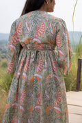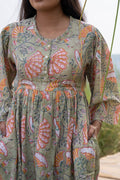 Forest Dress is a whimsical creation inspired by the beauty of nature. Crafted from soft, breathable cotton, this dress features a light shade of green adorned with a playful print of hibiscus and pastel-colored flowers. The 3/4th loose sleeves and relaxed fit provide effortless comfort, while the handy pockets add a touch of practicality. Perfect for a stroll through the park or a summer picnic, this dress captures the carefree spirit of the season.