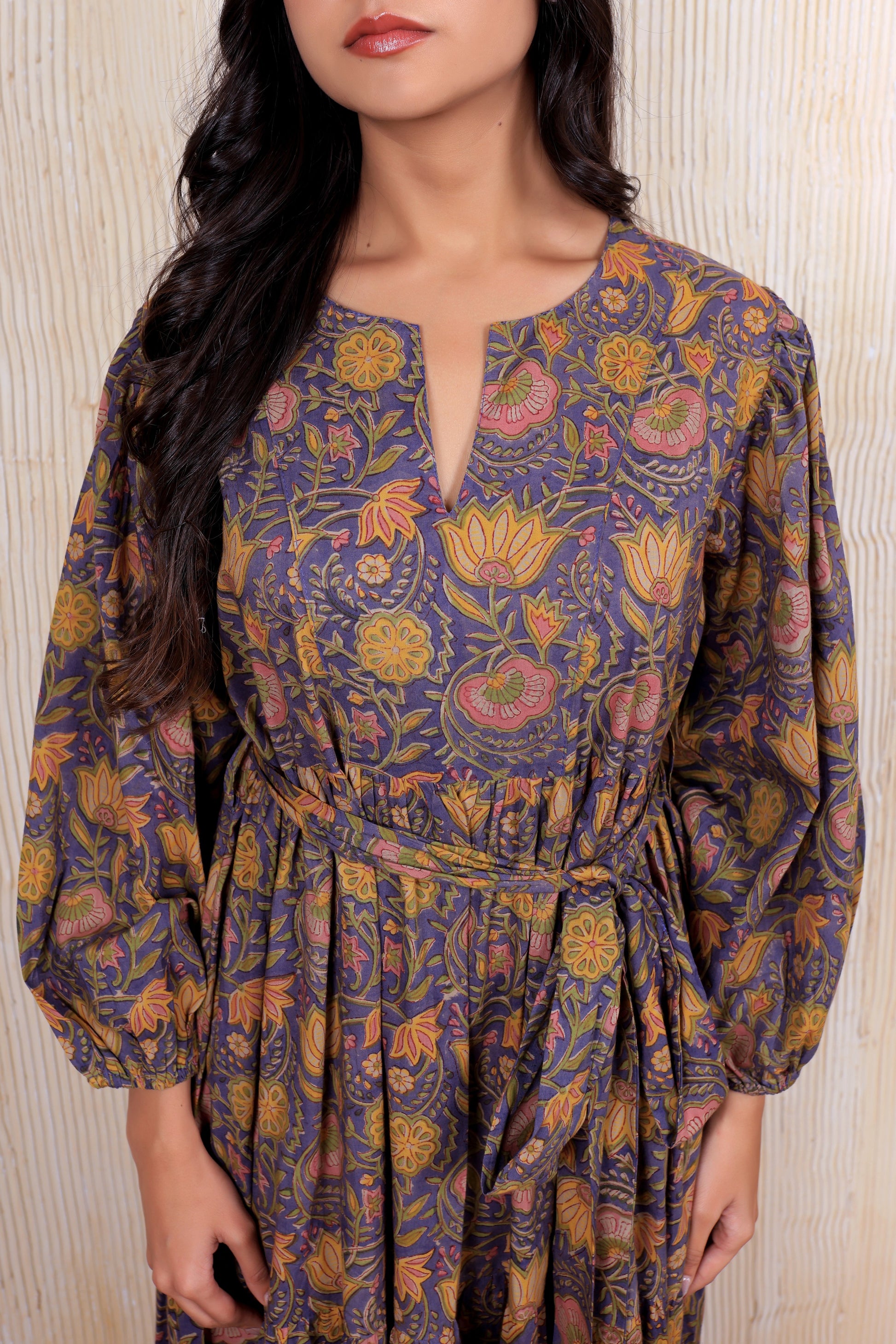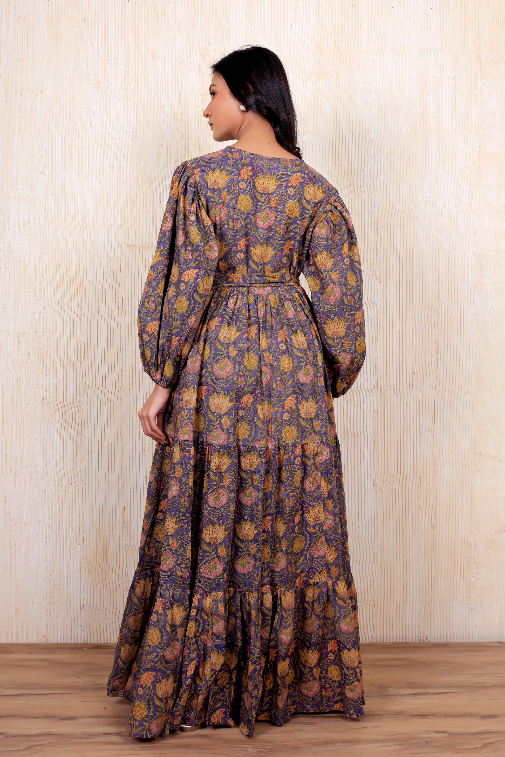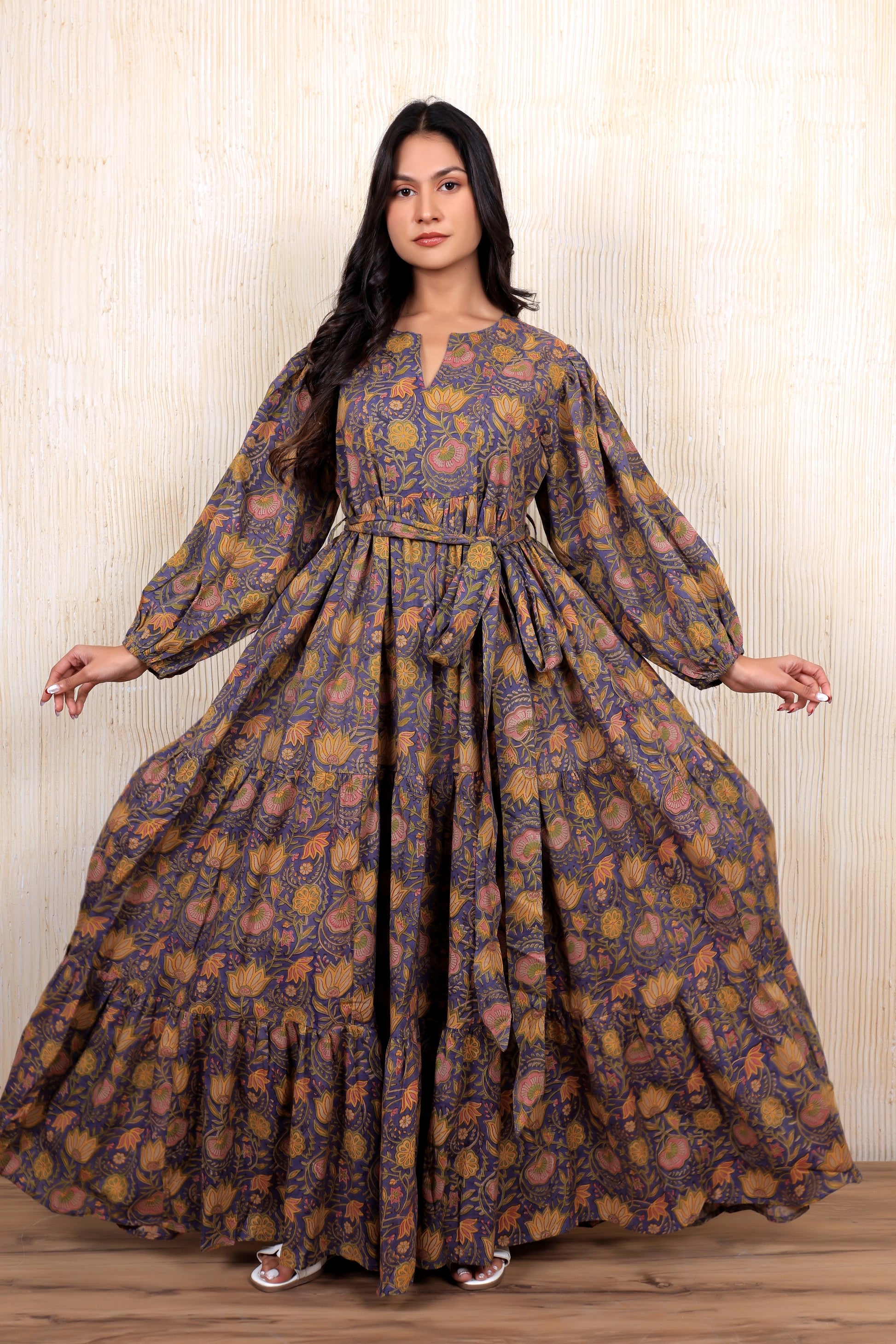 Crafted from sustainably sourced cotton, this block-printed maxi dress embodies traditional artisanal techniques passed down through generations. The flowing silhouette and breathable fabric make it an ideal choice for warm weather, while the timeless indigo palette ensures versatility across seasons. Each piece carries the distinctive character of hand-printed patterns, making it a unique addition to any wardrobe. Perfect for those seeking ethical fashion that celebrates heritage craftsmanship without compromising on contemporary style.