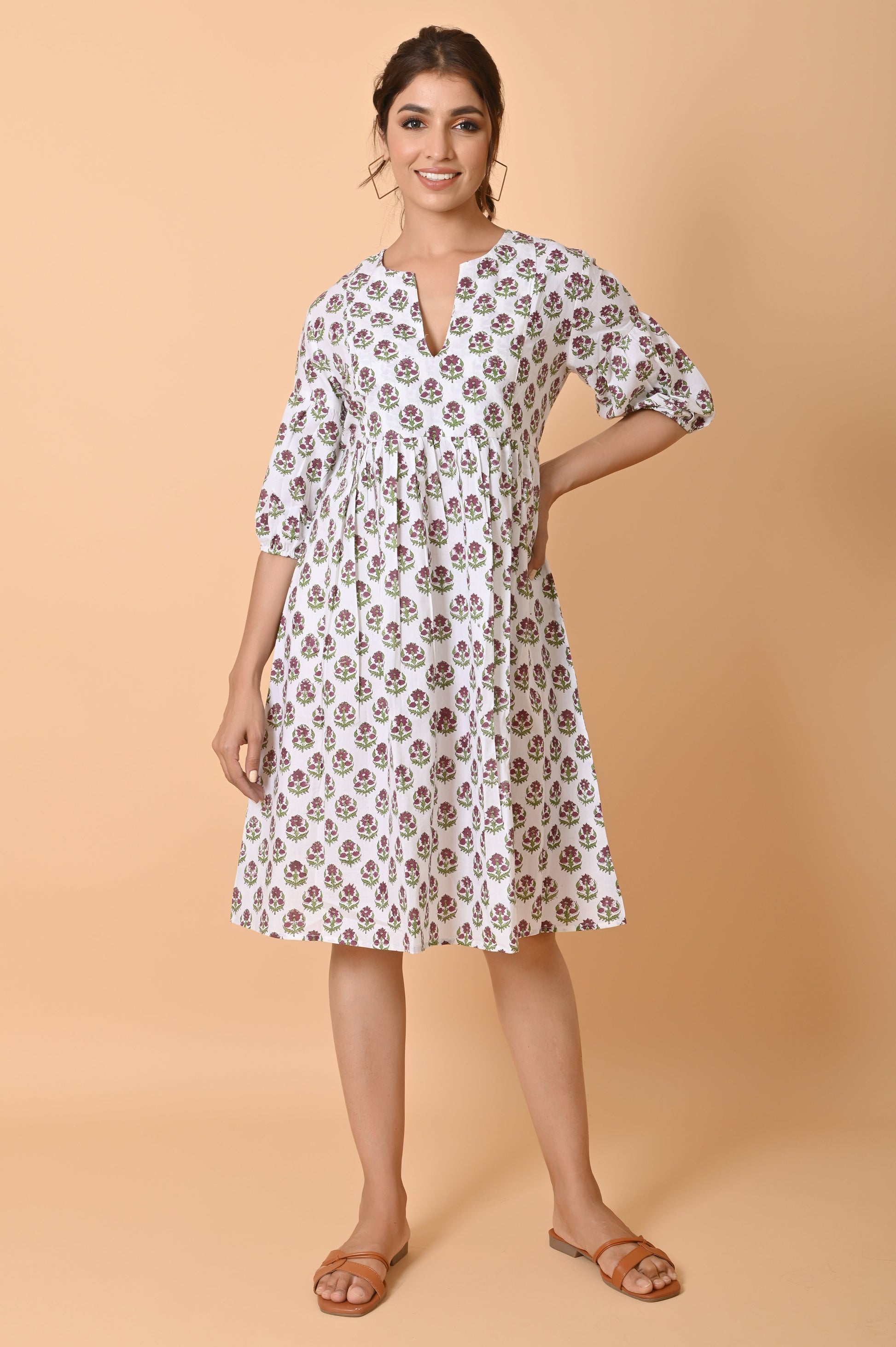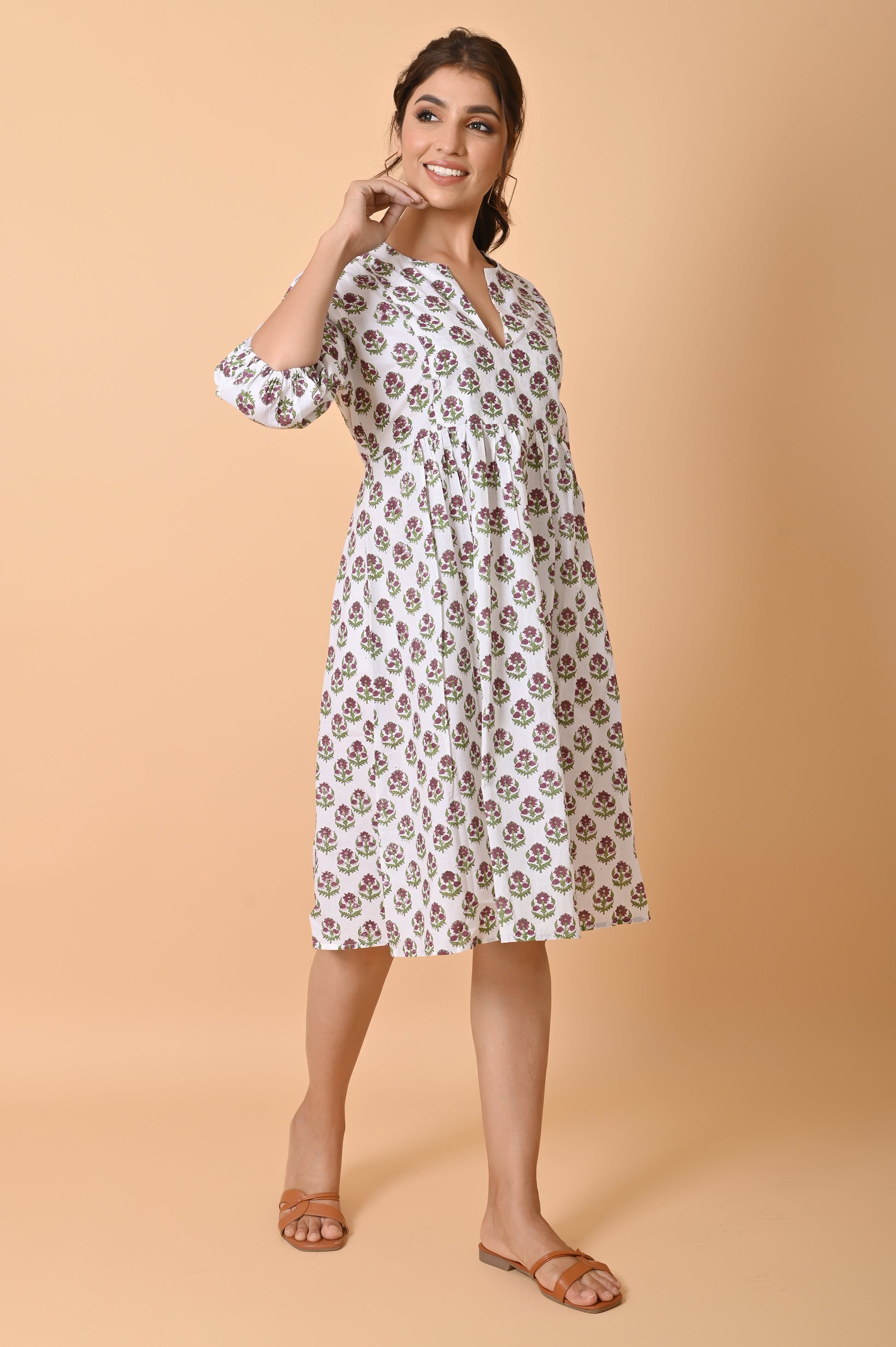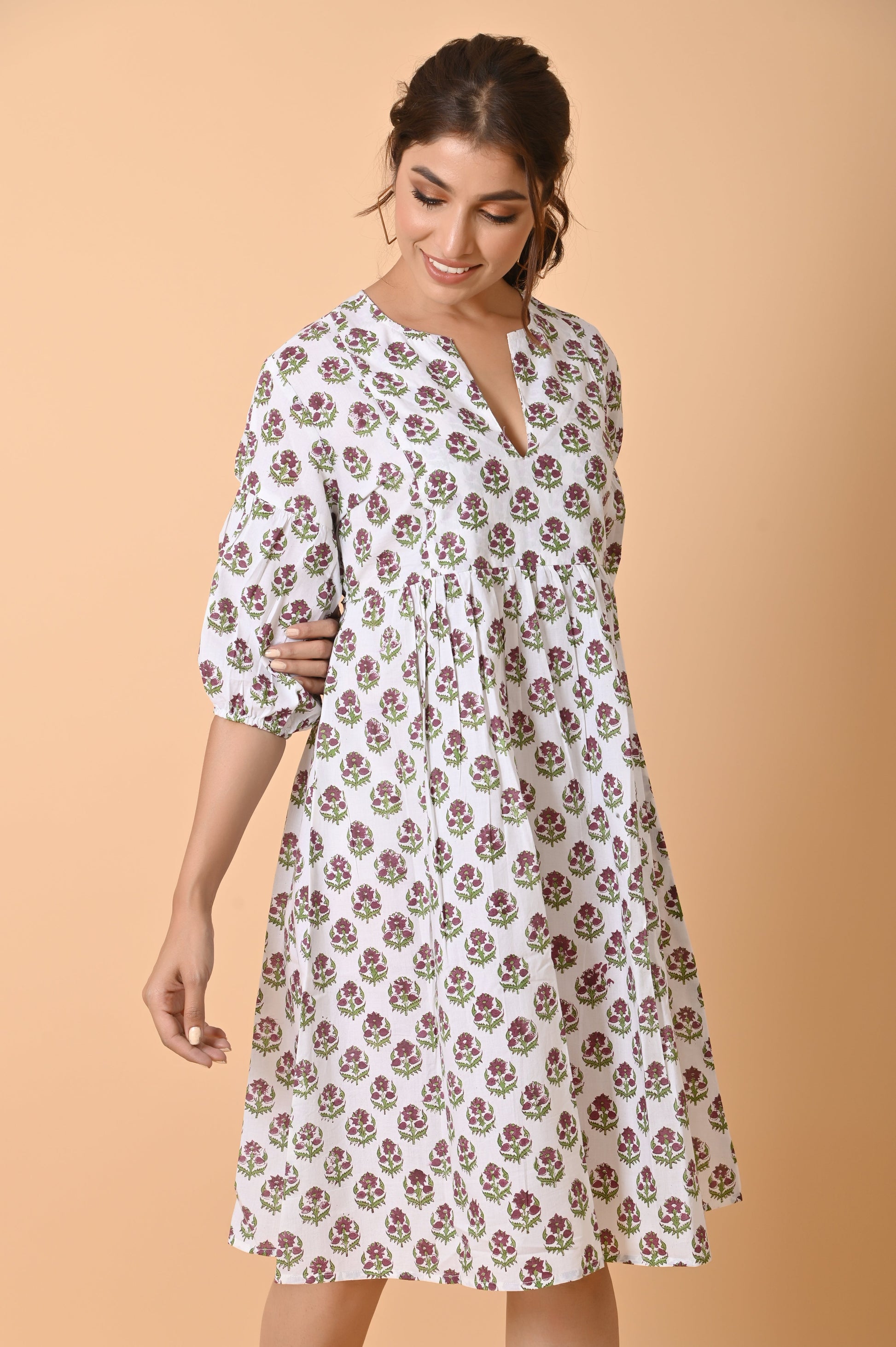 Exquisite Hand-Block Printed Cotton Wrap Dress for Effortless Elegance