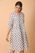 Immerse yourself in the rich heritage of Indian textiles as this dress features an age-old technique practices by the skilled artisans of Jaipur. The intricate patterns are meticulously carved onto