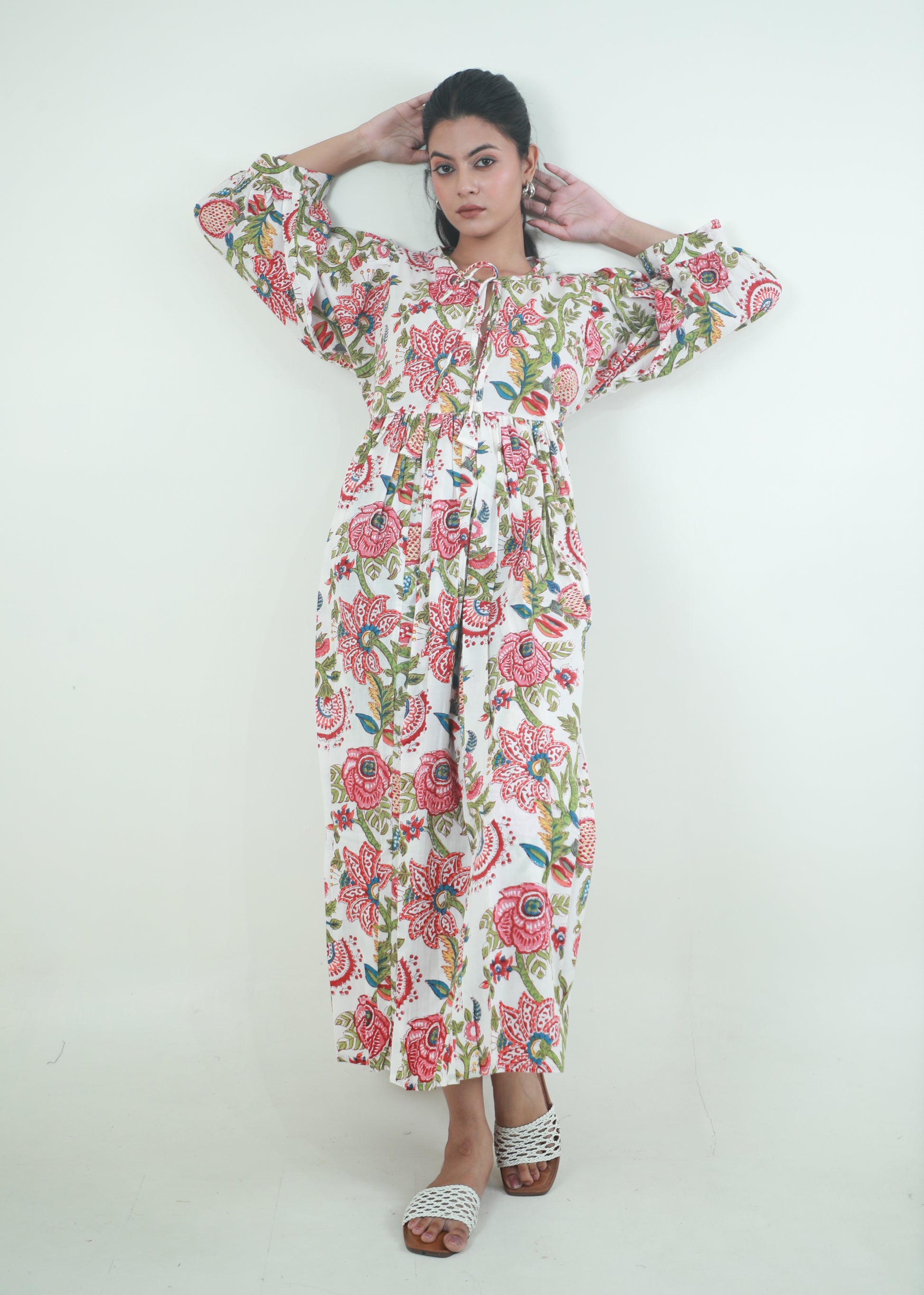 Add a touch of grace and sophistication to your collection with the Blando Cotton Block Print Long Dress. This versatile piece is designed to make you look and feel fabulous, no matter the occasion.