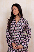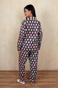 Hand Crafted from premium, breathable cotton, this co-Ord features a long-sleeved button-down top and matching wide-leg pants, both adorned with a captivating floral print inspired by nature's rich tapestry. The warm, Experience the perfect blend of comfort and luxury with our Trail cotton pajama set. Featuring exquisite block print designs, these pajamas combine traditional artistry with modern comfort. Available in multiple sizes from small to 3XL, ensuring a perfect fit for everyone. The premium cotton fabric offers breathability and softness for an indulgent night's sleep.