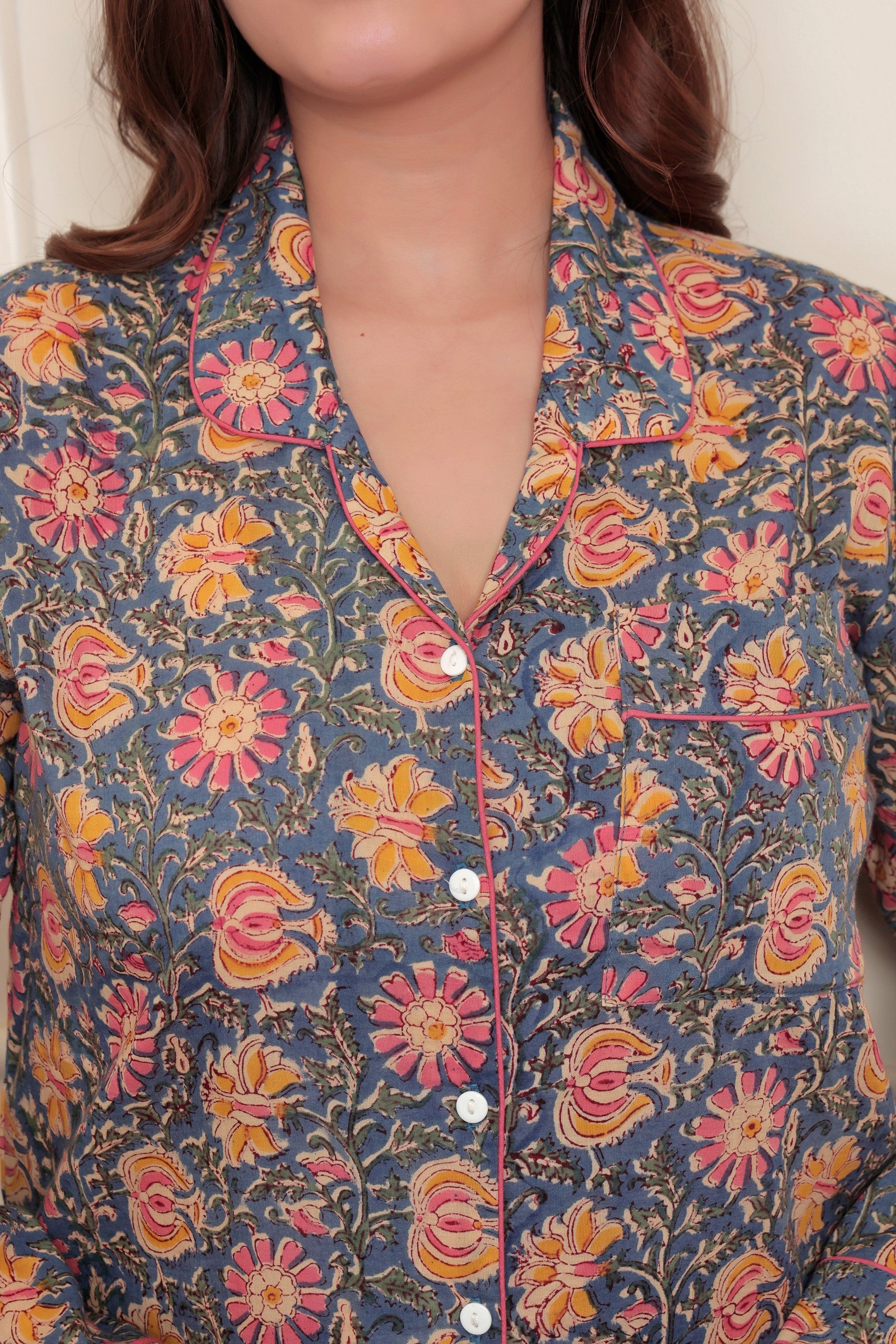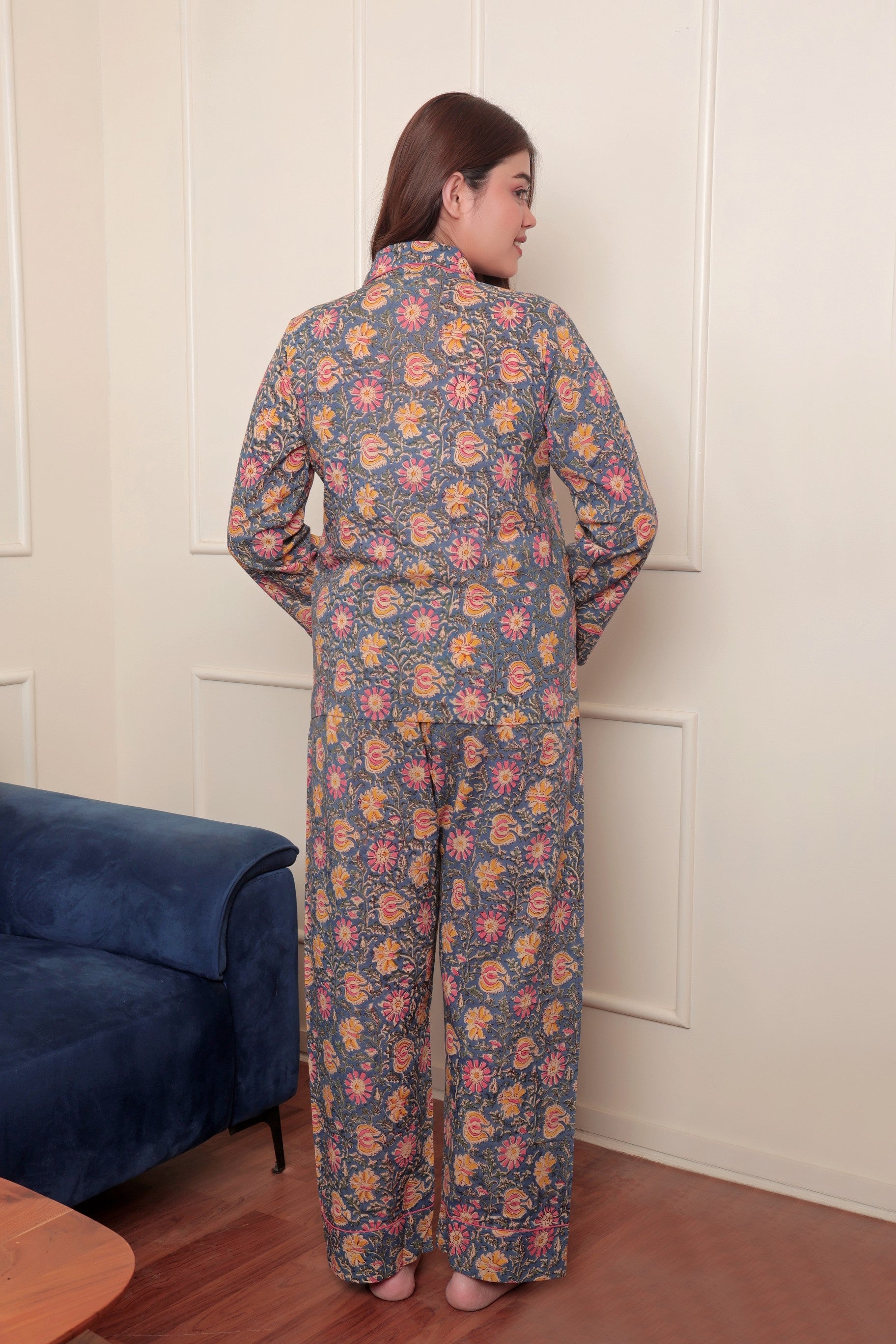 Experience the luxury of handcrafted sleepwear with this artisanal pajama set, featuring authentic hand block printing techniques passed down through generations of Indian craftsmen. The soft cotton construction provides exceptional breathability and comfort, allowing your skin to rest naturally throughout the night. Each piece showcases the Yellow Garden pattern—a testament to meticulous attention to detail and traditional textile artistry. Perfect for those who value sustainable fashion and appreciate the subtle variations that make handmade garments truly unique. Elevate your sleep routine with ethically crafted comfort.